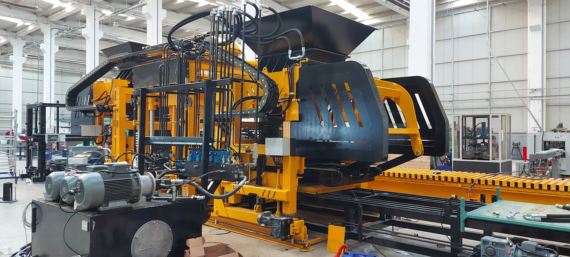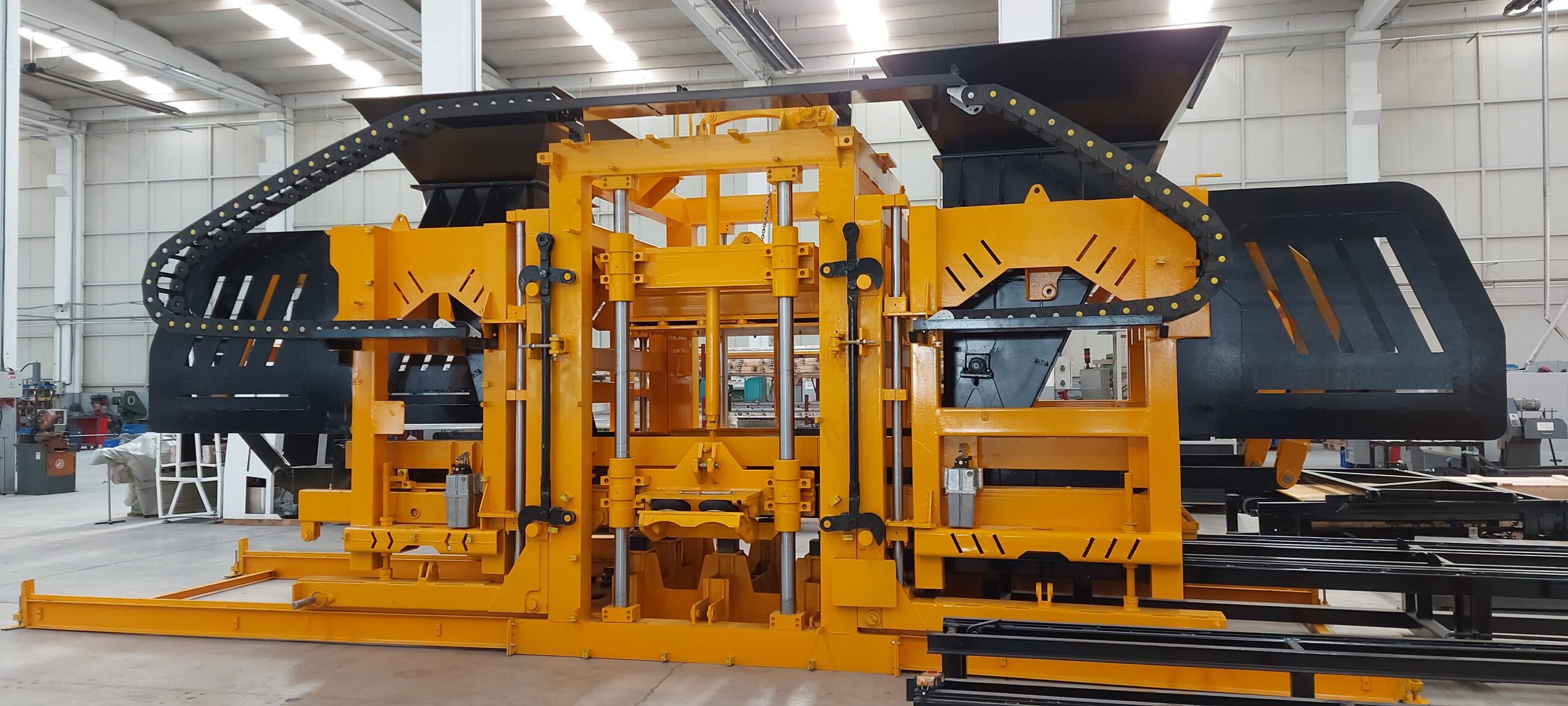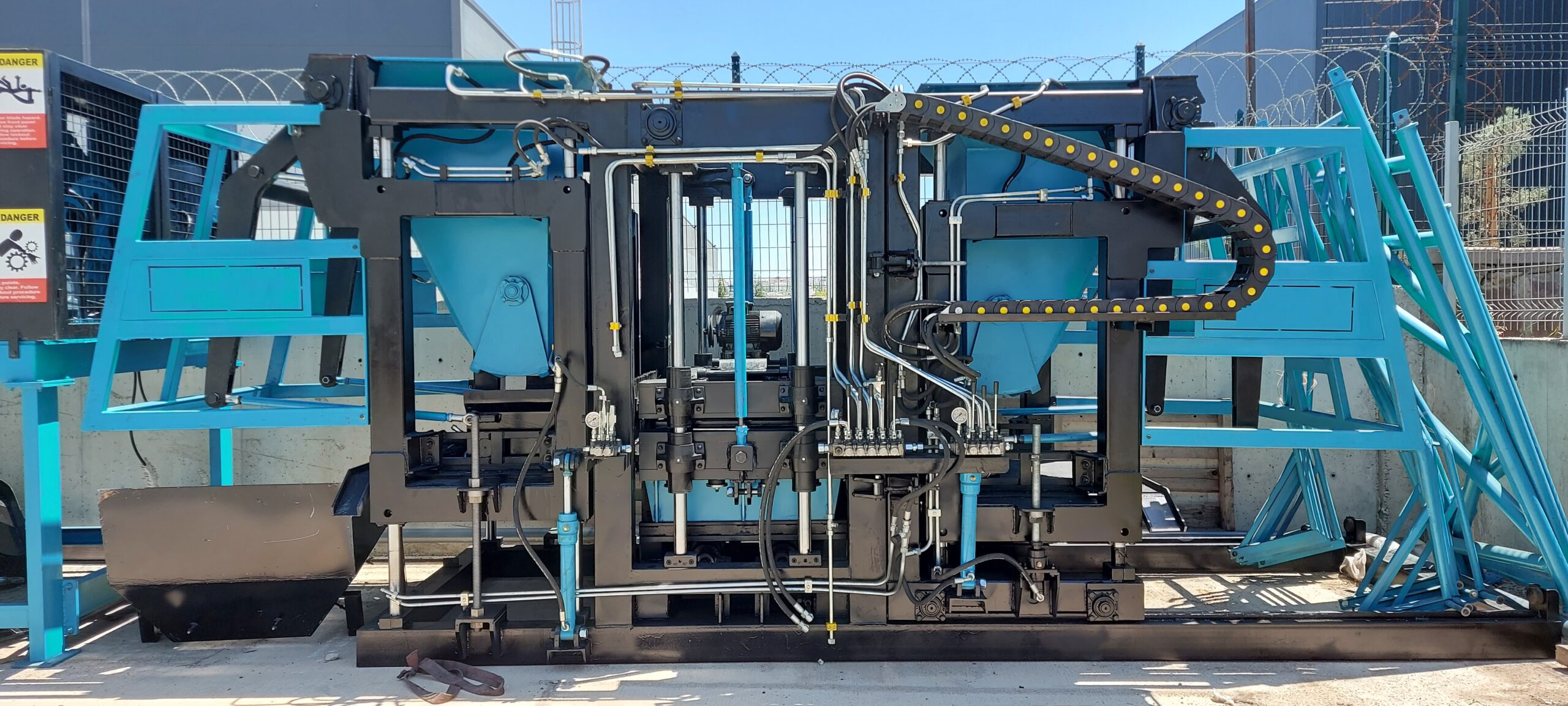 Il est possible de produire des éléments préfabriqués en béton tels que des pavés verrouillés ou déverrouillés, des pierres à gazon, des bordures en béton, des pierres de gouttière, des briques, des blocs creux, qui fonctionnent sur la base de la pression hydraulique et des vibrations mécaniques. La machine, contrôlée par un système d’automatisation manuel et PLC, est fabriquée avec deux trémies à mortier et un robot d’empilage.